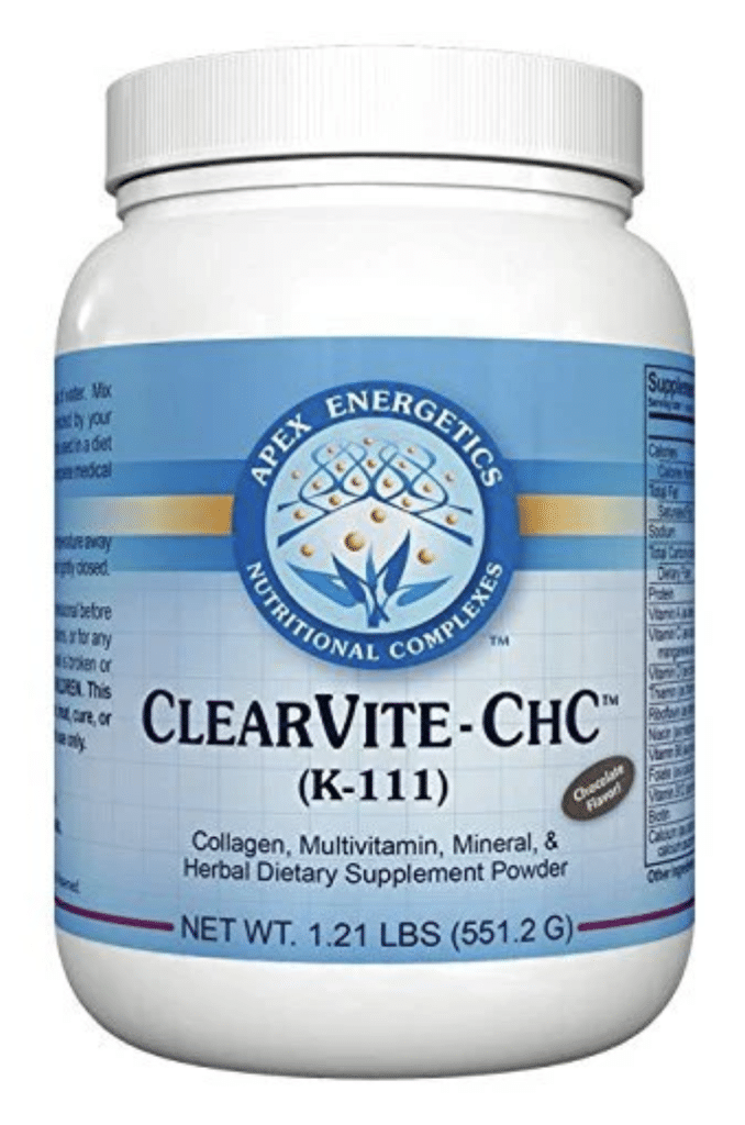 ClearVite-ChC is a hypoallergenic, nutrient-dense protein powder. Its primary goal is to provide the “fuel” your liver and intestines need to process and eliminate toxins.